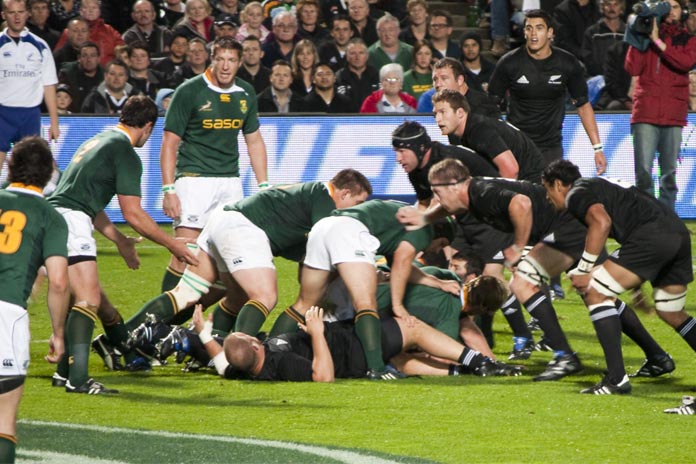 Los Springboks y los All Blacks se enfrentaron en la final del Mundial de rugby de 1995, en pleno ‘apartheid’. Autor: Dave.