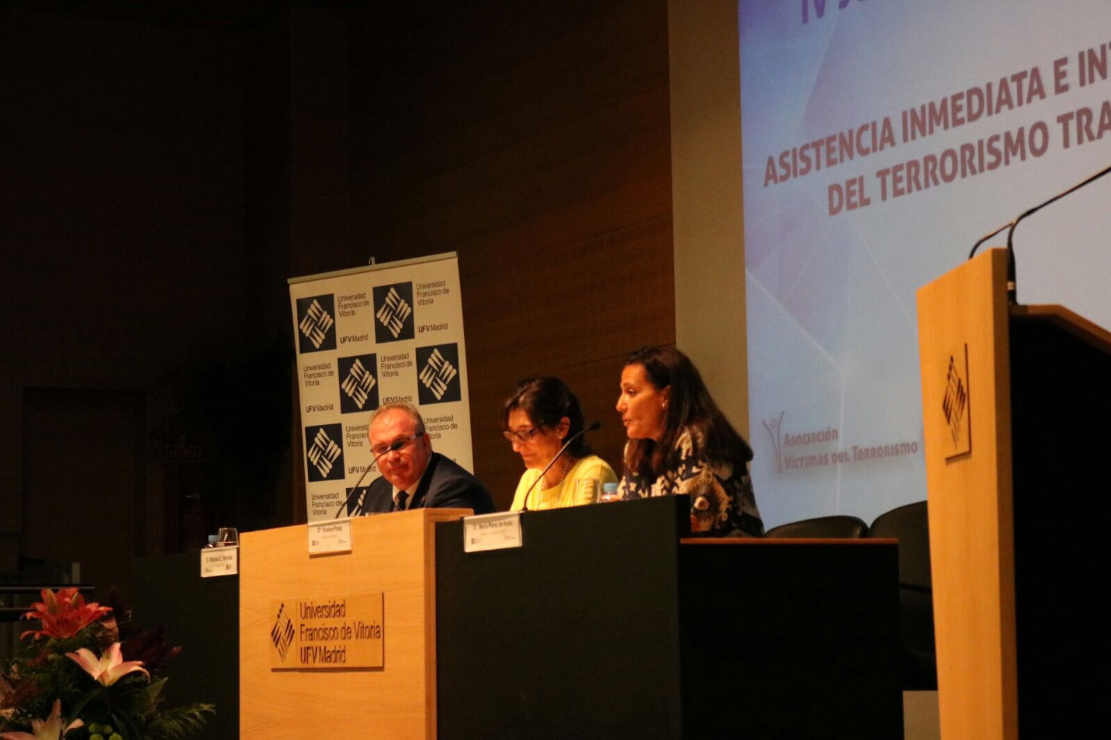 La jornada de la Asociación Víctimas del Terrorismo, que se celebraba por cuarta vez consecutiva en la Universidad Francisco de Vitoria(UFV), tuvo lugar el pasado lunes 16 de octubre. El evento, que duró más de ocho horas, comenzó con las palabras de María Pérez de Ayala, directora general de Relaciones Internacionales(RRII), quien definió la jornada como “un homenaje y manera de encarnar con coherencia aquello que decimos que queremos ser”. El presidente de la AVT, Alfonso E. Sánchez, recogió su turno y aprovechó su discurso para definir a la UFV como el lugar “donde las víctimas nos sentimos atendidas y comprendidas”. En la apertura también intervino la alcaldesa de Pozuelo de Alarcón, Susana Pérez, quien lanzó un mensaje de unidad y compartió su entusiasmo por el acto.