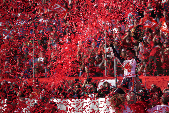Con tan solo 24 años, Márquez continúa haciendo historia en el mundo del motociclismo. Una nueva victoria, de la que dijo: “Nadie se cansa de ganar”. El catalán valoró el título conquistado y recordó las claves del campeonato: “Lo mejor del año fue Valencia, pero esto fue una consecuencia de otros puntos clave en el curso. En Alemania me puse líder antes de vacaciones y Brno para empezar bien después. En Argentina llegó la gran cagada del año, me tiré de los pelos. Por mi exceso de ganas cometí errores que ya hice la campaña pasada”.